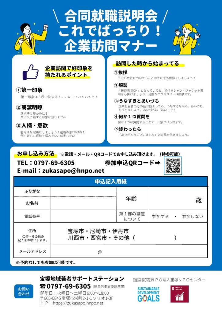 さらに、11:00~12:00は就職準備講座としまして、就職に役立つビジネスマナーや面接での心構え等の講座を開催します。